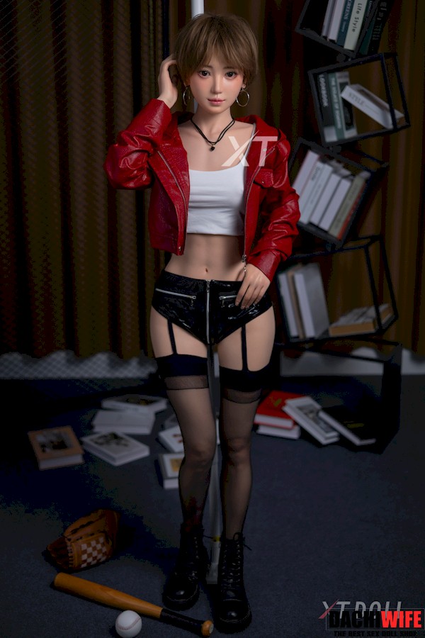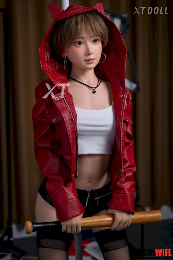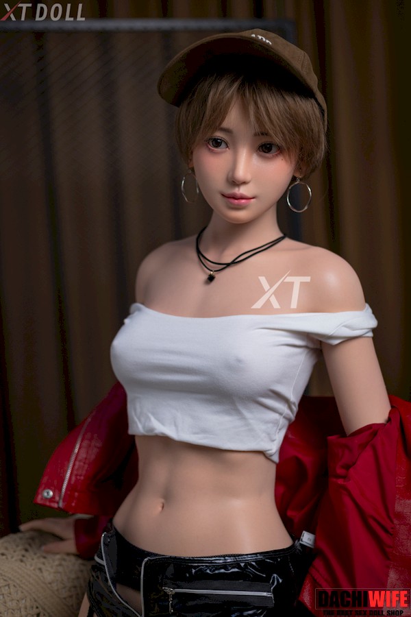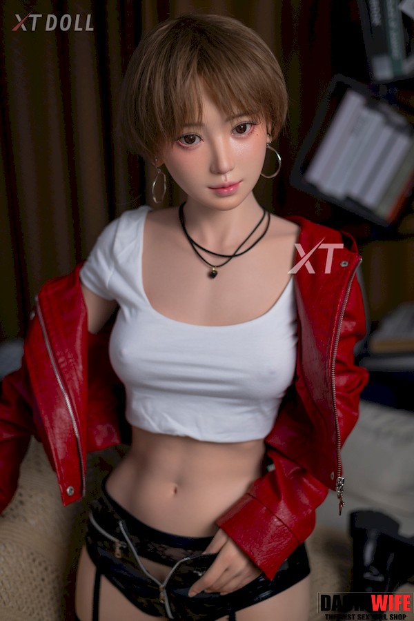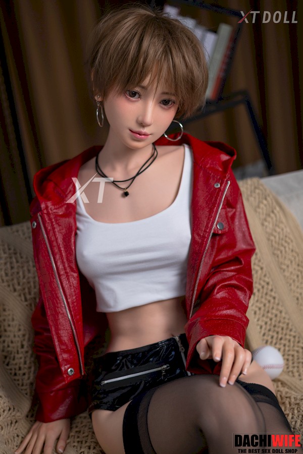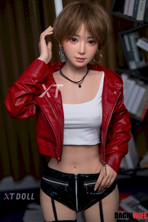 In an era when most girls have long hair, this small breasts sex doll with brown short hair looks very special: she has a cute and handsome face, and two big silver hoop earrings on her ears, which add a bit of softness and a bit of handsomeness to her. She wears a white vest and a red leather jacket, black short leather pants and black stockings, the colors are very bright and fashionable. When the chic Japanese love doll puts on headphones or picks up a musical instrument, she looks like an experienced band member who is about to shine on the stage.